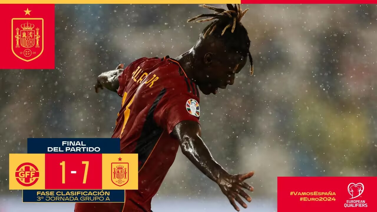 直播9月9日讯 北京时间9月9日凌晨0:00,欧预赛小组赛A组,西班牙客场挑战格鲁吉亚。上半场,阿森西奥助攻莫拉塔头球破门,法比安造乌龙,奥尔莫进球,莫拉塔双响。下半场,查克维塔泽扳回一球,莫拉塔帽子戏法,威廉姆斯锦上添花,亚马尔收获处子球。全场结束,西班牙7-1格鲁吉亚,西班牙2胜1负排名A组第二。2007年出生的16岁小将亚马尔创造了西班牙队史的最年轻出场纪录及最年轻的进球纪录。