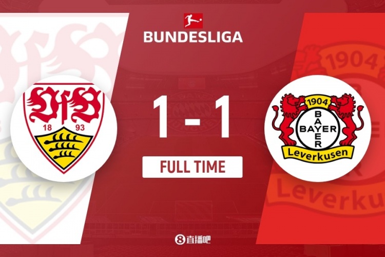 伤停补时5分钟。全场结束,勒沃库森1-1斯图加特。