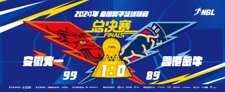 比赛开始,双方上来迅速进入状态,刘传兴接连内线打成,琼斯和马奇接连反击,香港金牛一波8-0建立主动权,约翰逊和吉伦沃特接连内线强打追到差4分,次节安徽文一进攻端状态不佳,香港金牛一波11-2领先到双位数,约翰逊继续内线强打并造杀伤追分,卡尔顿内线能回应,半场香港金牛领先9分。下半场,朱松玮上来就受伤离场,安徽文一接连三分命中一波14-0攻击波直接反超比分,香港金牛内线止血,但吉伦沃特内线强打挡不住,三节安徽文一反超6分,末节香港金牛8-2咬住比分,但安徽文一接连两记三分强势回应,约翰逊被罚下,琼斯有攻有传继续带队咬住比分,吉伦沃特再次回应拉开双位数领先,最终安徽文一99-89逆转香港金牛,总比分1-0领先。