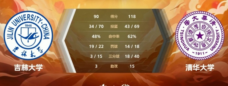 末节比赛,清华大学稳扎稳打保持大比分的优势,吉林大学继续冲击篮筐苦苦追赶,杨凯文和陈子禛联手拿分帮助清华保持领先,王鹏高效输出连连得手,过大的分差让比赛早早失去悬念。最终,清华大学118-90大胜吉林大学。
