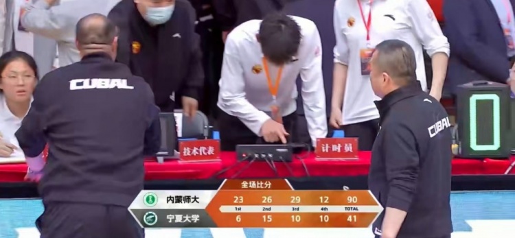 比赛开始,宁夏大学十分慢热,投篮不在线且频频出现失误,葛庭宇连续3记三分砍下10分带队12-4开局。后半节宁夏大学还是没有手感仅靠罚球得到2分,徐嘉烁三分也开和,内蒙师大连续造杀伤走上罚球线继续扩大领先,首节内蒙师大23-6领先宁夏大学。