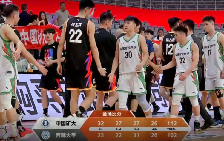 末节开局花志成和林晓峰的进球两度为球队追至8分但都无力再进一步,中国矿大总能关键时刻拿分,艾渝和肖恺的相继得分一直维持领先,随后在吉林大学哑火的阶段又依靠9-4的攻势拉开15分的优势奠定胜局。这之后中国矿大打得更加稳定一直确保优势。最终,中国矿业大学112-102击败吉林大学拿下比赛。
