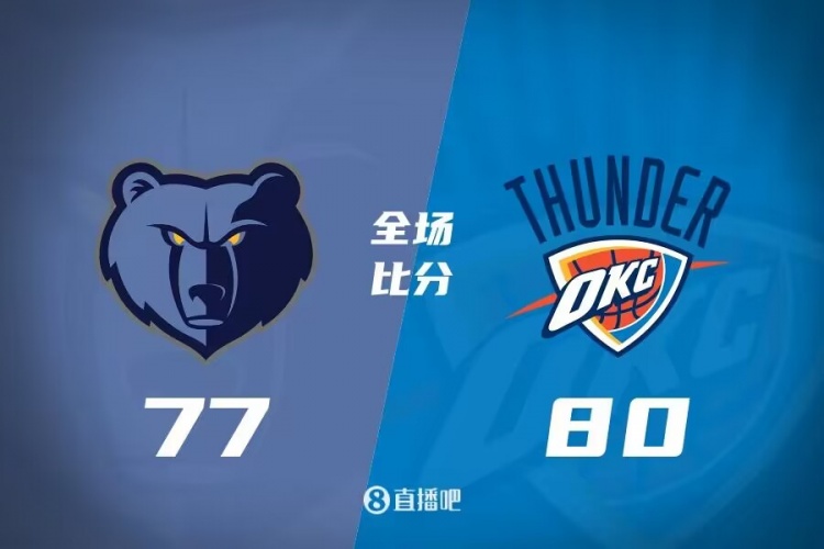 开场后灰熊连续进攻内线,杰米森频频拿分,雷霆多点开花紧咬比分。第二节两队进攻端表现不佳,米切尔异军突起独得11分,灰熊在GG-杰克逊带领下和雷霆僵持不下,上半场结束时雷霆反超1分。下半场两队依旧打得十分胶着,第四节雷霆一度打出攻势将比分拉开,灰熊又顽强的将比分追上,小皮蓬错失绝平三分,最终雷霆80-77击败灰熊。
