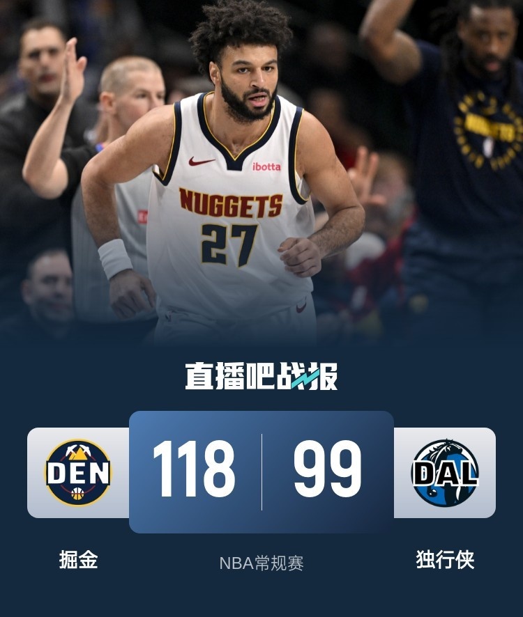 🏀穆雷45+6 约基奇三双 欧文复出18中4 掘金再胜独行侠迎4连胜