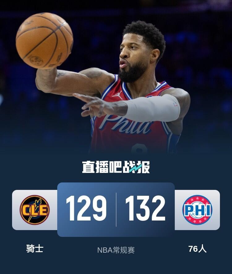 🏀乔治30+5 米切尔37+7 杰罗姆三分8中8 76人爆冷胜骑士止7连败