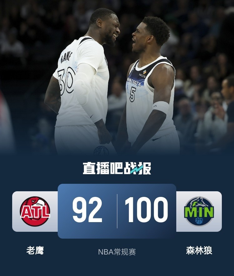 🏀爱德华兹23+5 亨特35分 吹杨&约翰逊缺战 森林狼送老鹰5连败