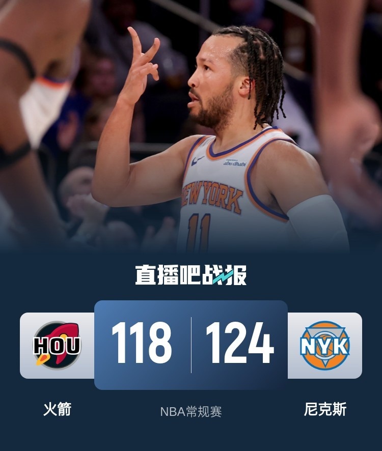 🏀布伦森42+10 阿门三双 尼克斯末节轰46分逆转送火箭三连败