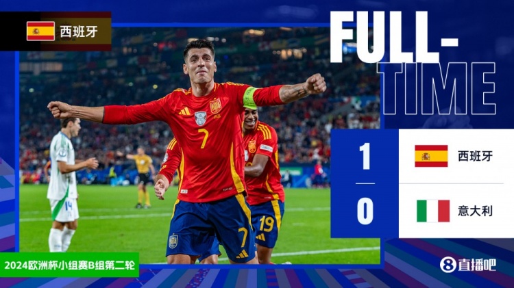 下半场补时4分钟。最终全场比赛结束,西班牙1-0意大利。