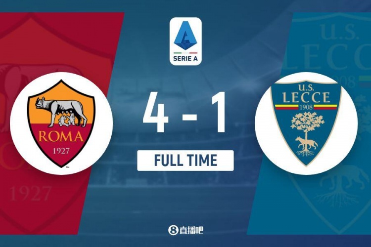 下半场补时4分钟。最终全场比赛结束,罗马4-1莱切。