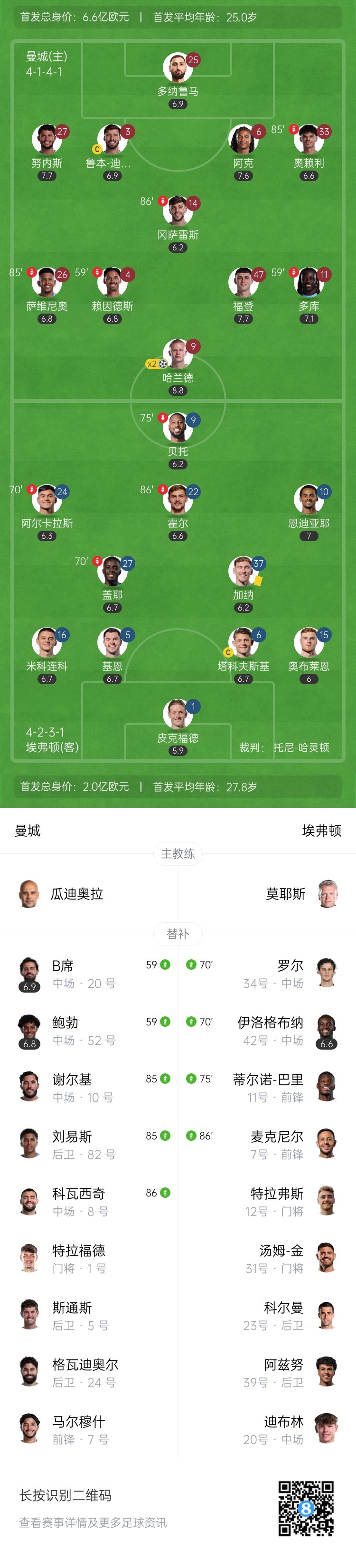 【双方首发以及换人信息】