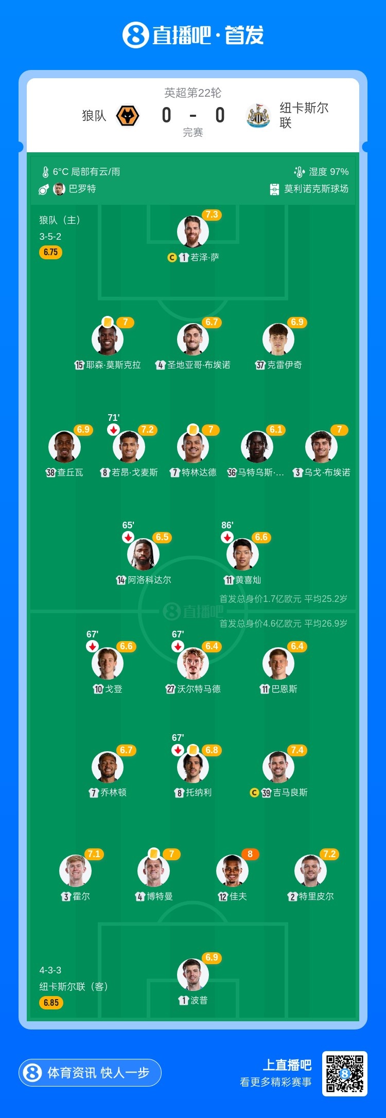 狼队0-0逼平纽卡4轮不败取6分 喜鹊英超3连胜终结+各赛事3场不胜