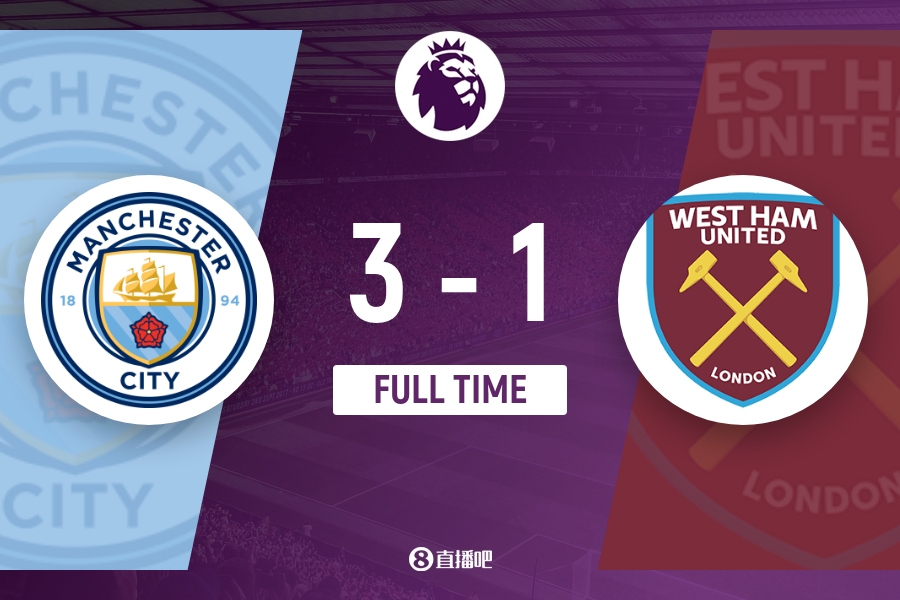 下半场补时5分钟。最终全场比赛结束,曼城3-1西汉姆。