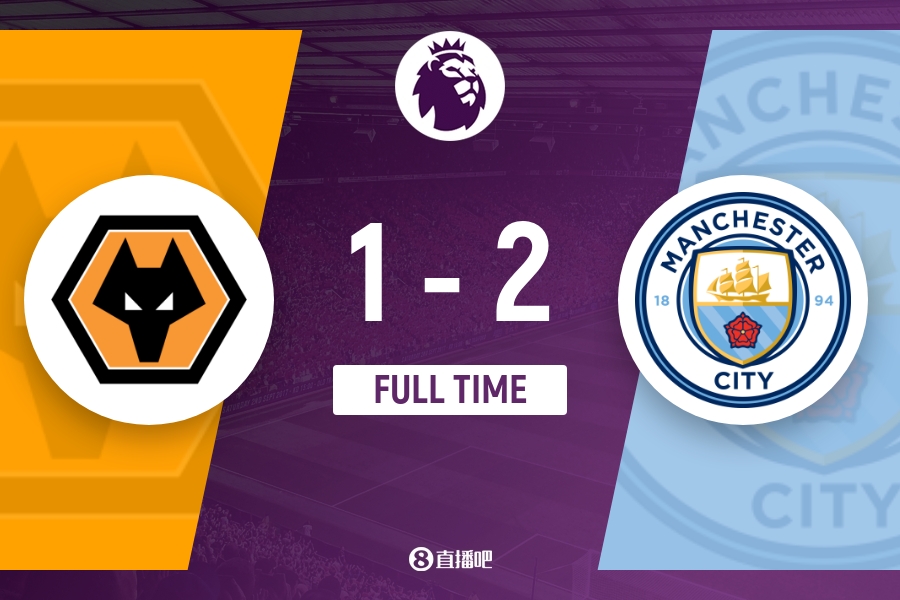 全场比赛结束,曼城2-1狼队。