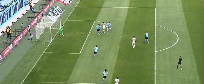 下半场易边再战,第50分钟,朱鹏宇点球点附近回做吕焯毅弧顶远射打在队友身上出底线。↓