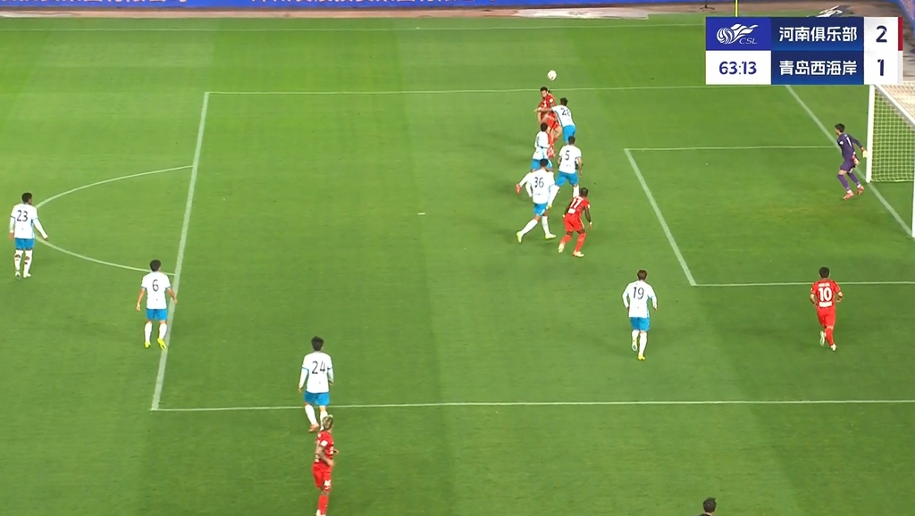 第63分钟,河南队再度领先,纳萨里奥策动攻势,他随后在右路送出传中,费利佩-卡多索头球摆渡,阿奇姆彭头球接力破门,河南队2-1领先青岛西海岸。↓