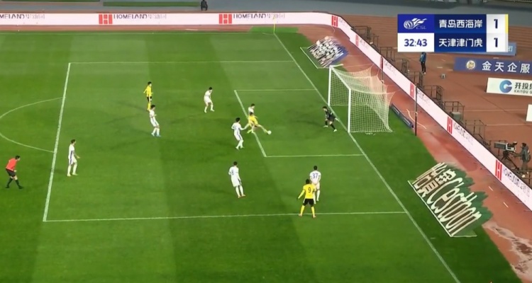 全场比赛结束,天津津门虎客场2-2战平青岛西海岸。