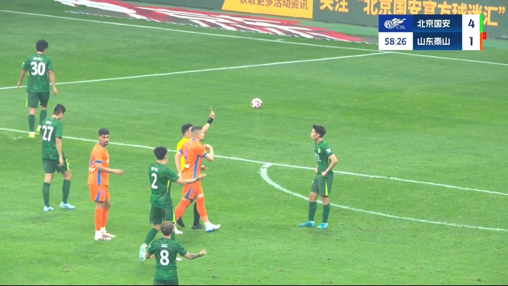 单场3直红!十人国安6-1九人泰山 主裁唐顺齐判罚抢镜 张玉宁传射