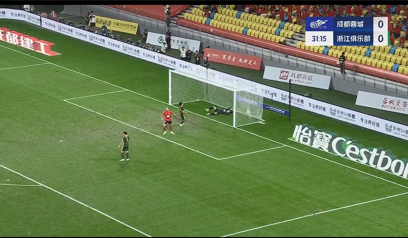 浙江终场前扳回一城!埃弗拉主罚点球一蹴而就,成都蓉城2-1浙江!↓