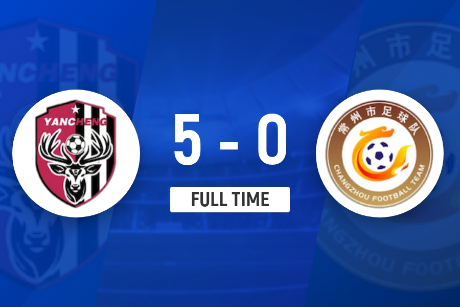 7负1平+未进1球!十人常州0-5盐城继续垫底 盐城升第三郑文煊双响