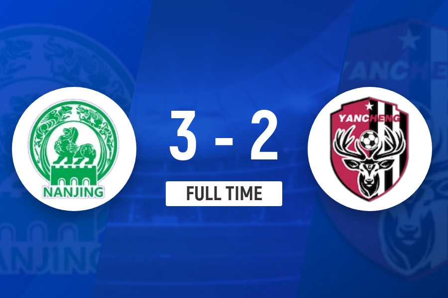下半场补时6分钟,南京3-2盐城。