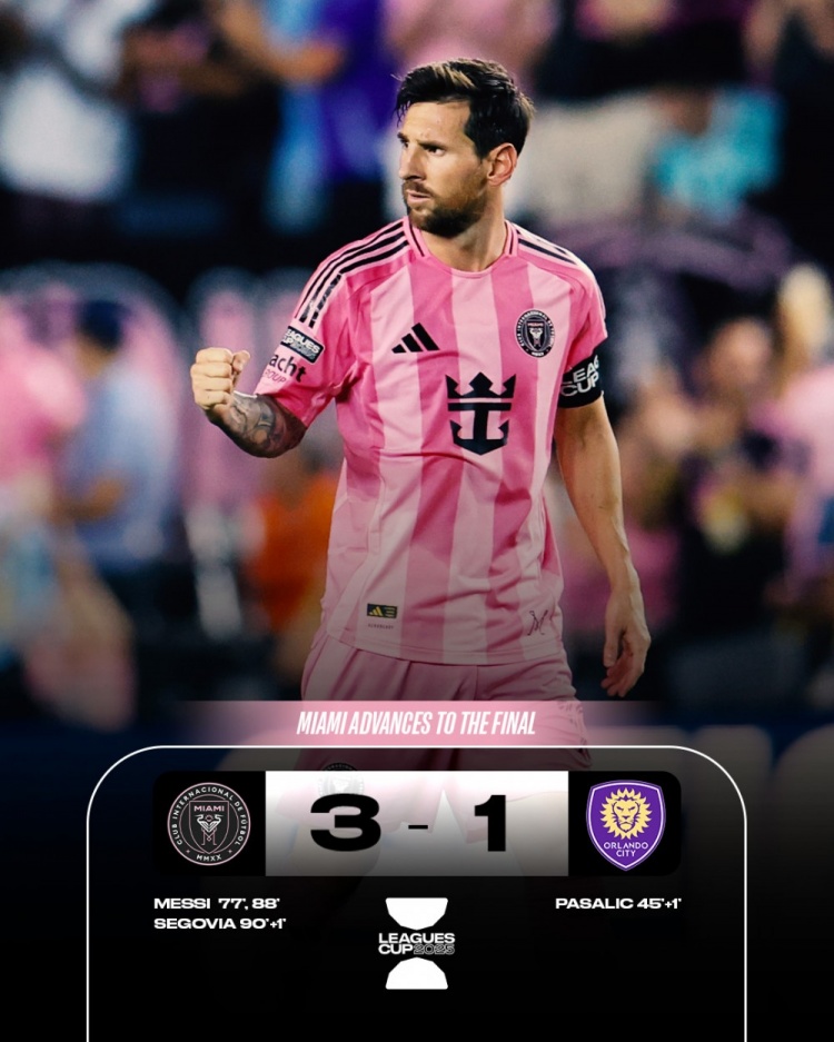 联盟杯-迈阿密3-1逆转奥兰多城杀入决赛!梅西双响+逆转关键球