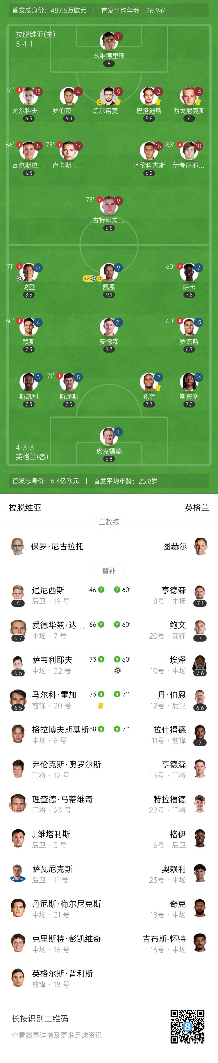 全场比赛结束,英格兰5-0拉脱维亚。