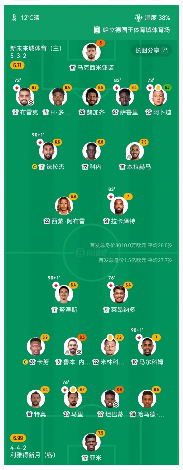 【双方首发及换人信息】
