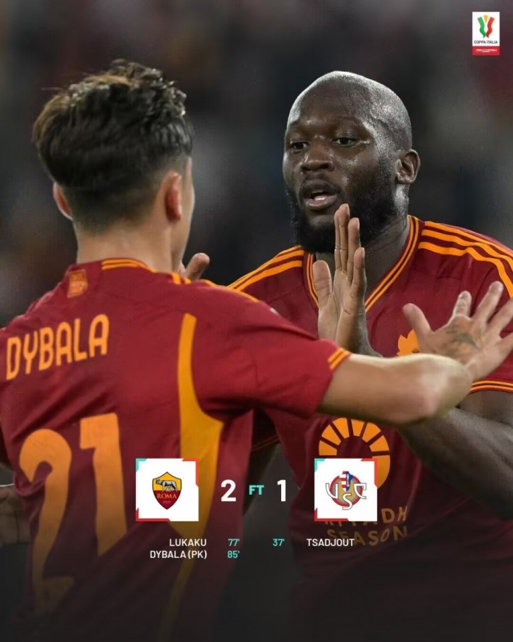1月4日讯 北京时间1月4日凌晨4点整,2023-24赛季意大利杯第3轮在罗马奥林匹克球场展开角逐,罗马坐镇主场迎战克雷莫纳。上半场佩莱格里尼中框,萨朱打破僵局,下半场沙拉维中柱&失空门,卢卡库失良机后扳平,斯皮替补造点,迪巴拉点射制胜。最终罗马主场2-1逆转克雷莫纳晋级8强,罗马下轮意杯将对阵拉齐奥。