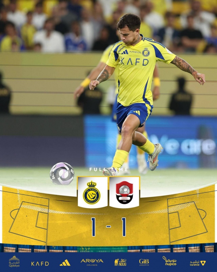 第60分钟,利雅得胜利左路传到禁区塔利斯卡头球顶在立柱上弹出。