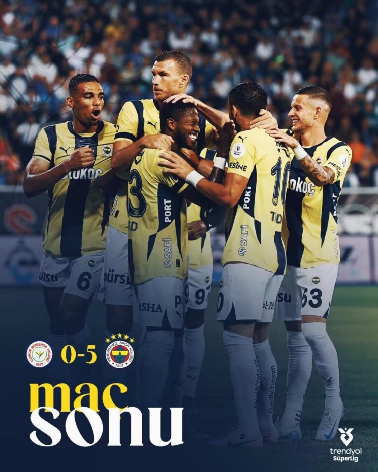 费内巴切首发:40-利瓦科维奇、16-穆尔杜、2-瑟云聚(70’50-贝考)、6-德吉库、24-杰登、5-尤克塞克。13-弗雷德(81’22-梅尔坎)、10-塔迪奇(78’20-云德尔)、53-希曼斯基、97-圣马克西曼(70’17-卡维奇)、9-哲科(70’19-恩内斯里)