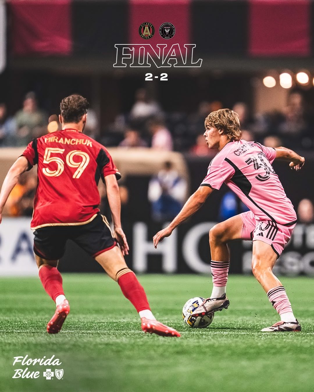 下半场补时6分钟,亚特兰大联2-2迈阿密国际。