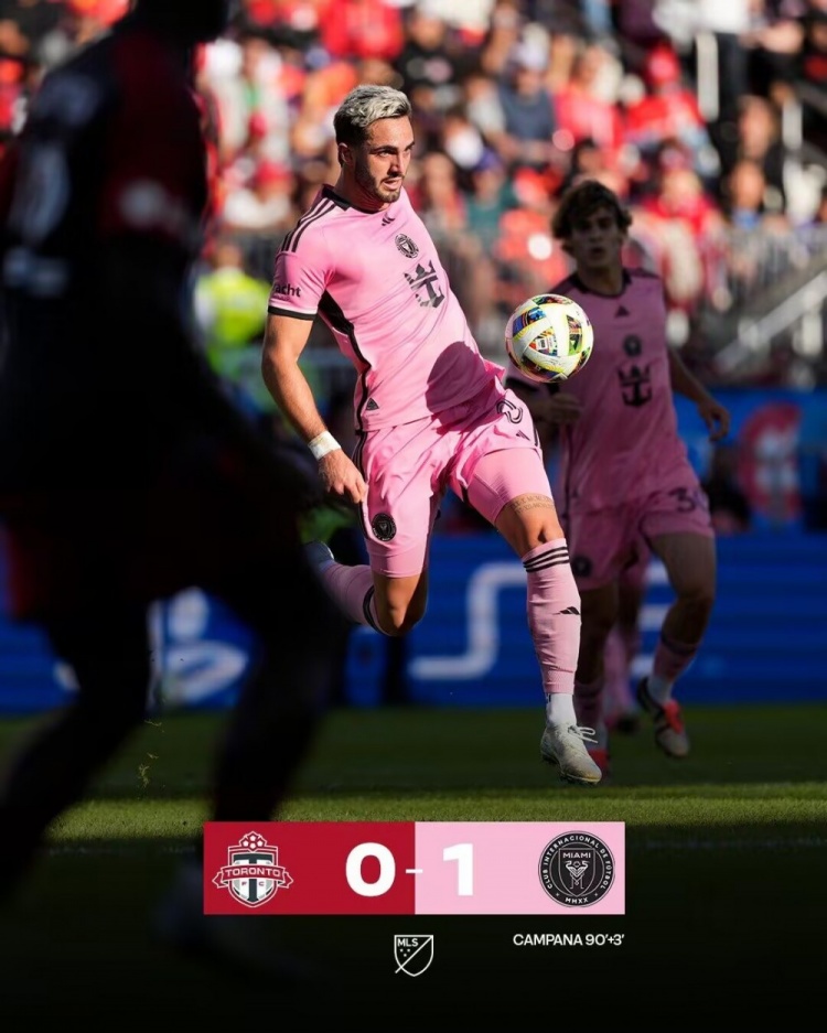 第93分钟,坎帕纳分球边路,随后自己直插禁区,苏亚雷斯凌空抽传到禁区内,坎帕纳胸部停球凌空抽射!迈阿密国际1-0多伦多FC↓