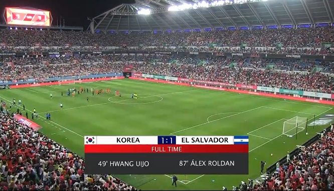 全场比赛结束,韩国队1-1战平萨尔瓦多队。