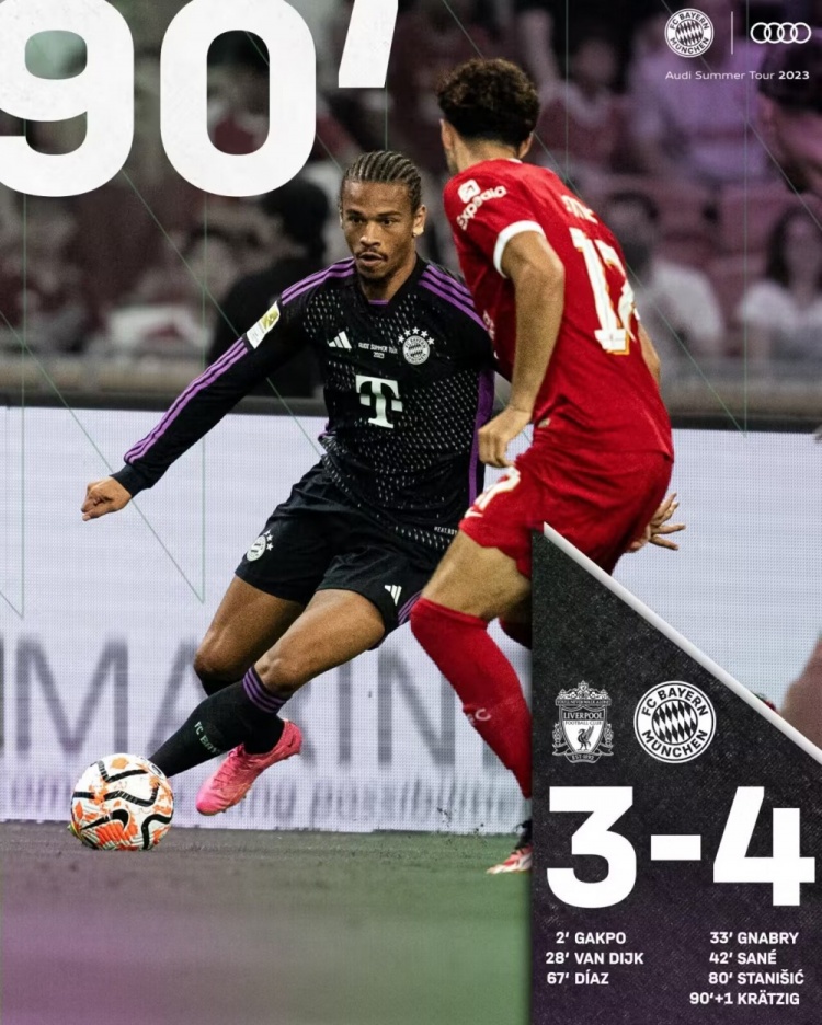 友谊赛-进球大战!拜仁4-3绝杀利物浦 克雷茨格补时世界波制胜