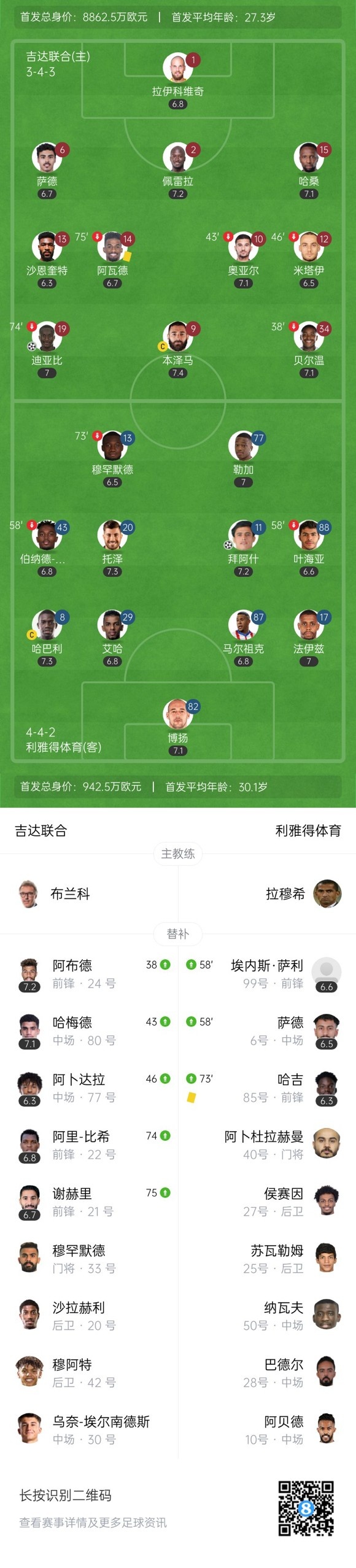 双方首发以及换人信息: