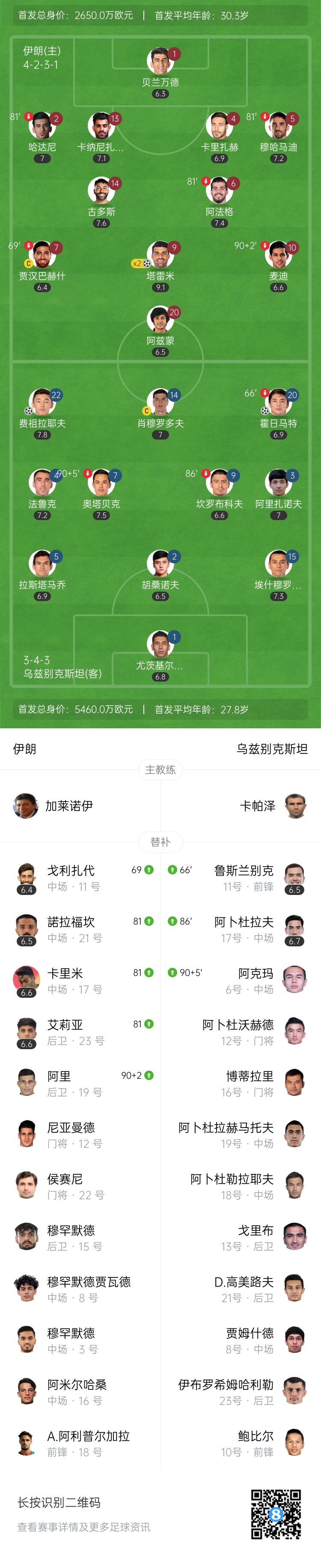 直通世界杯!伊朗2-2乌兹提前2轮锁定资格 塔雷米双响阿兹蒙助攻
