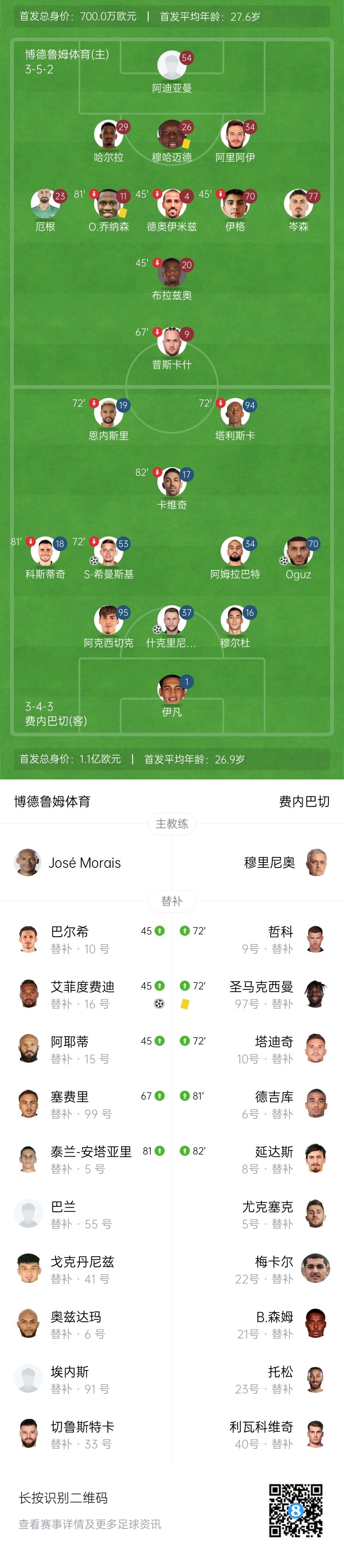 第85分钟,博德鲁姆体育右路传中到后点,头球摆渡下来,队长艾菲度费迪凌空爆射破门!主队扳回一球2-4费内巴切↓