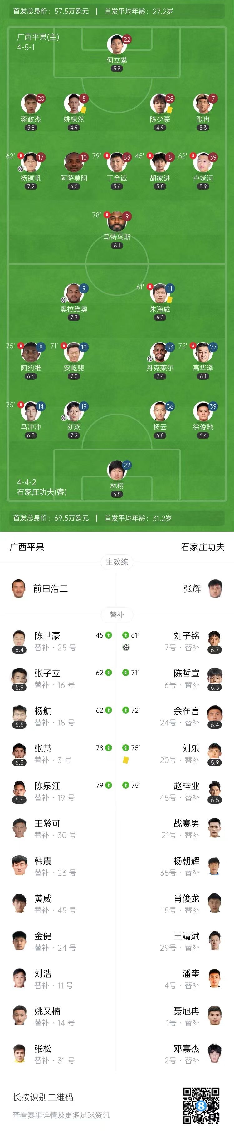 5月10日讯 北京时间5月10日19:30,中甲第8轮,广西平果坐镇主场平果果晶体育场迎战石家庄功夫。上半场,阿约维助攻奥拉维奥破门,杨镜帆抢射扳平比分,丹克莱尔轰出世界波。下半场,刘欢任意球变线入网。全场比赛结束,广西平果主场1-4不敌石家庄功夫,开赛8轮未尝一胜。