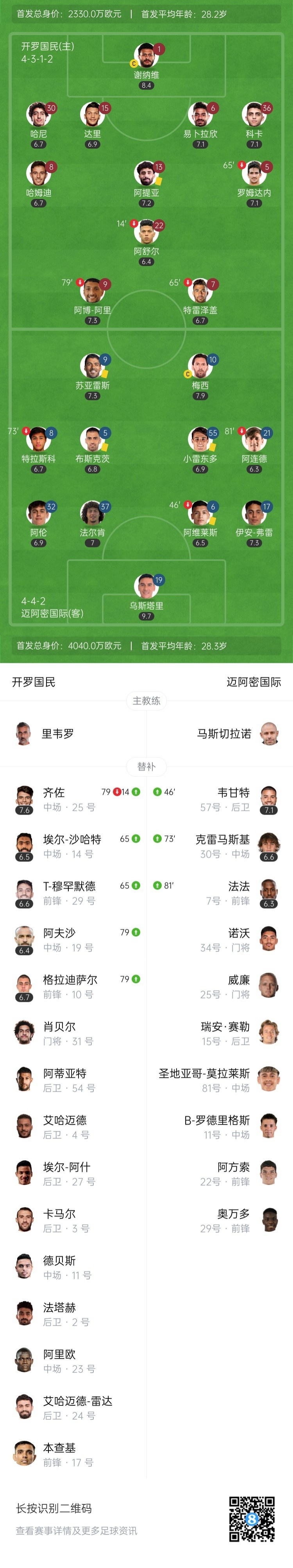 全场比赛结束,迈阿密国际0-0战平开罗国民。